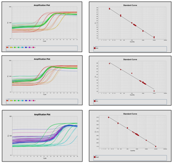 (2)?????? 本公司構(gòu)建了多種微生物的功能基因(如:nirS、nirK以及nosZ等)質(zhì)粒標(biāo)準(zhǔn)品,這些標(biāo)準(zhǔn)品擴增效率高,標(biāo)準(zhǔn)曲線相關(guān)系數(shù)(R2)均在0.98以上。